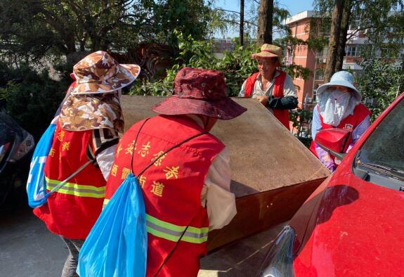 每天早上7點,黨員志愿者們帶著夾子、鏟子、掃帚等工具,清掃路面上的落葉、撿拾花壇里的各類垃圾、鏟除墻面上的小廣告,同時合力將非機動車擺放到規(guī)定區(qū)域內(nèi);面對飛線充電亂象,志愿者們上門入戶勸解,宣傳其中危害,督促住戶自行收回接線板,為轄區(qū)居民營造文明安全的社區(qū)環(huán)境。