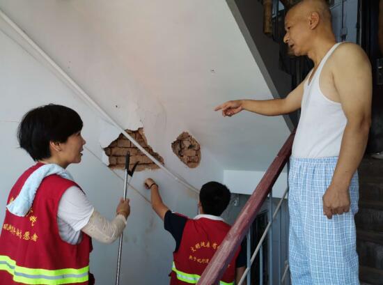 8月9日上午8點多,南京市棲霞區(qū)燕子磯街道電瓷社區(qū)1號網格員葉斌像往常一樣進行日常巡查,當走到勝利一村3幢二單元3、4樓之間的樓道時,發(fā)現(xiàn)樓道墻體異常,純白的墻面破損了兩處,有磚塊快要突出來,當即敲門入戶查看,發(fā)現(xiàn)裝修工人正在砸墻。“請立即停下來,外面樓道墻磚,我馬上聯(lián)系房主,這種裝修施工是不允許的。”隨即撥打了房主黃師傅的電話。
