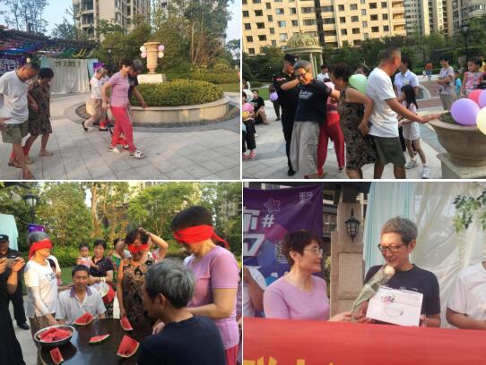 浪漫七夕節(jié),濃濃社區(qū)情。此次活動在七夕知識競答賽中拉開帷幕,大家圍繞故事內(nèi)容認真思考、爭相搶答,整場比賽在緊張又愉快的氛圍中展開。在接下來的《天仙配》、《甜蜜蜜》、《月亮代表我的心》等情歌聲中,參與者們用飽滿的熱情、唯美的曲調(diào),傳遞愛的正能量,贏得了在場居民的稱贊和掌聲。隨后活動的游戲環(huán)節(jié),分為“背對背軋氣球”和“蒙眼吃瓜”兩個環(huán)節(jié)。“背對背軋氣球”環(huán)節(jié),參與者采用兩人三足的方式跑到指定位置后背對背夾破氣球,時間最短,優(yōu)先者獲勝。在“蒙眼吃西瓜”環(huán)節(jié)中,需要女士蒙住雙眼喂搭檔吃西瓜,先吃完、吃干凈的獲勝,只見大家各顯身手,很快紅瓢變綠皮,惹得居民紛紛叫好。游戲結(jié)束后,七夕愛情詩會緩緩開始,大家用經(jīng)典誦讀的形式分享他們對“七夕”的理解,他們或聲情并茂或飽含深情,讓觀眾沉浸在詩詞文海,大家深深感受到傳統(tǒng)文化的魅力?;顒拥淖詈螅詤⑴c人員合影留念,共同記錄下這一美好時刻,不知不覺活動已接近尾聲,大家卻仍然沉浸在快樂之中,個個意猶未盡。