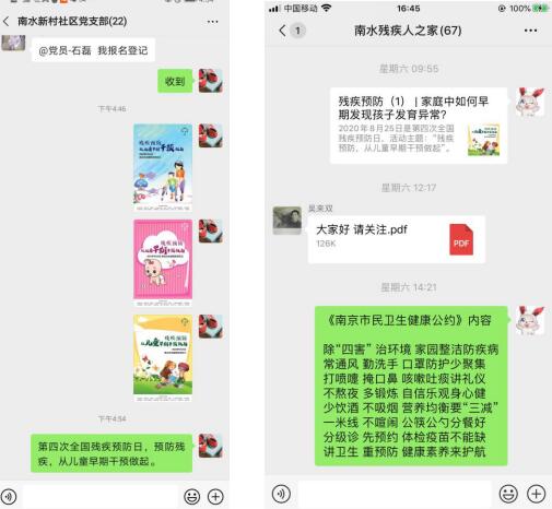 在本次宣傳教育活動(dòng)中,南水新村社區(qū)黨支部充分利用現(xiàn)有的線上線下渠道進(jìn)行殘疾預(yù)防知識(shí)的宣傳,利用宣傳欄、科普屏播放等形式宣傳預(yù)防知識(shí),通過微信群等向社區(qū)居民大力宣傳殘疾預(yù)防相關(guān)法規(guī)、政策,竭力做到廣泛普及預(yù)防遺傳、發(fā)育障礙、疾病等致殘的科學(xué)知識(shí),提升廣大群眾對(duì)殘疾預(yù)防的能力。