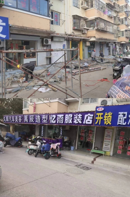 近期,在日常的網(wǎng)格巡查中,潤康苑社區(qū)工作人員發(fā)現(xiàn)融康苑27棟的門面房存在嚴(yán)重的安全隱患。門頭脫落、下沉、斷裂等問題不僅影響了市容市貌,更對周邊居民的出行安全構(gòu)成了嚴(yán)重威脅。