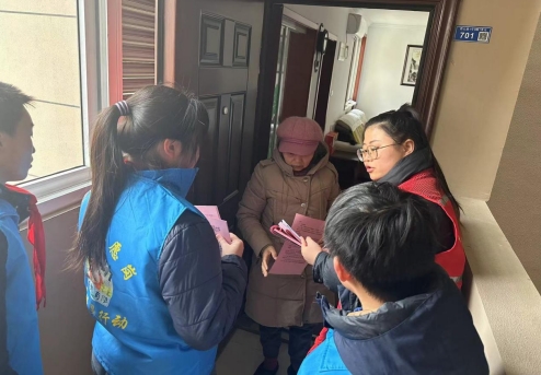 隨后,學(xué)生們又分成小組,上門入戶宣傳樓道安全知識(shí)。他們向居民們耐心講解了樓道內(nèi)禁止堆放雜物的重要性,提醒居民們保持樓道暢通,確保居民的安全出行。同學(xué)們的熱情和認(rèn)真態(tài)度得到了居民們的一致好評(píng)。
