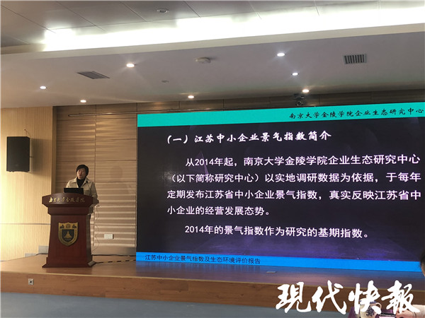 據(jù)悉,從2014年起,南京大學金陵學院企業(yè)生態(tài)研究中心開始調(diào)研和編制江蘇中小企業(yè)景氣指數(shù),中心通過權威問卷的方式,從生產(chǎn)(服務)、市場、金融、政策4方面綜合評價江蘇中小企業(yè)過去6個月的經(jīng)營實績。