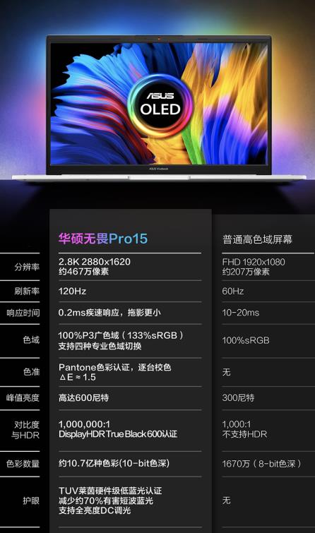 在保持高性能創(chuàng)作的同時(shí),無畏Pro15 2022的屏幕素質(zhì)也同樣令人稱贊。作為#華碩好屏3.0#的又一成員,它搭載2.8K 120Hz OLED HDR屏,采用E4發(fā)光材質(zhì),在色彩、亮度、對(duì)比度等參數(shù)上全方位超越傳統(tǒng)筆記本屏幕,大屏實(shí)力嘆為觀止。